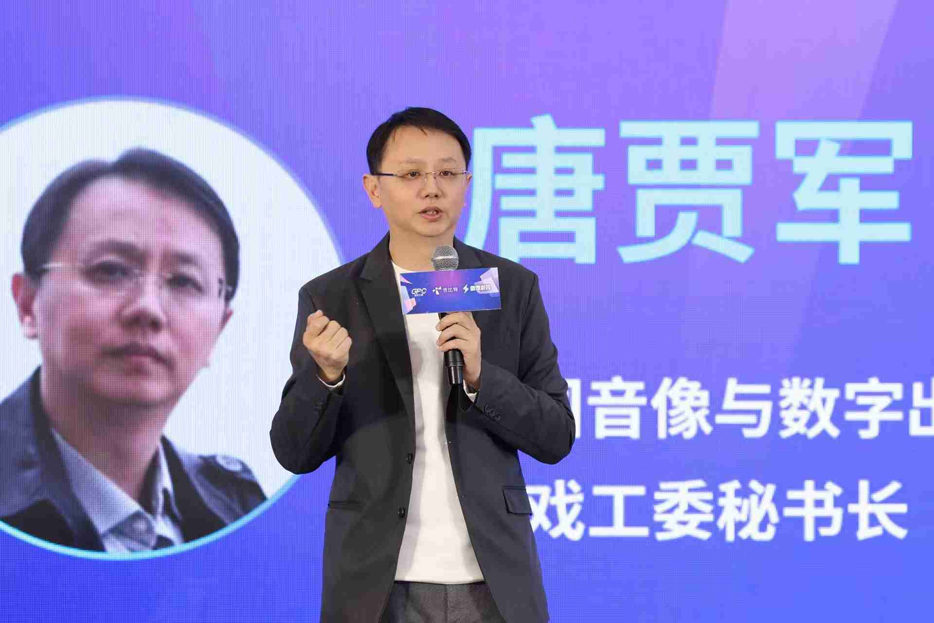 论坛伊始,,,中国音像与数字出版协会副秘书长、、、游戏工委秘书长唐贾军出席并作开幕致辞。。。。他首先辨析了游戏行业“国际化”“本土化”与“全球化”的递进关系,,,,指出全球化旨在构建全球协同生态链。。基于此,,,,他提出三点展望::一是构建多极全球市场新格局;二是依托技术实现全球协同创作;三是推动文化融合超越单向输出,,,,让全球玩家在情感共鸣中自然接纳差异,,发挥游戏作为文化载体的深层价值。。。。